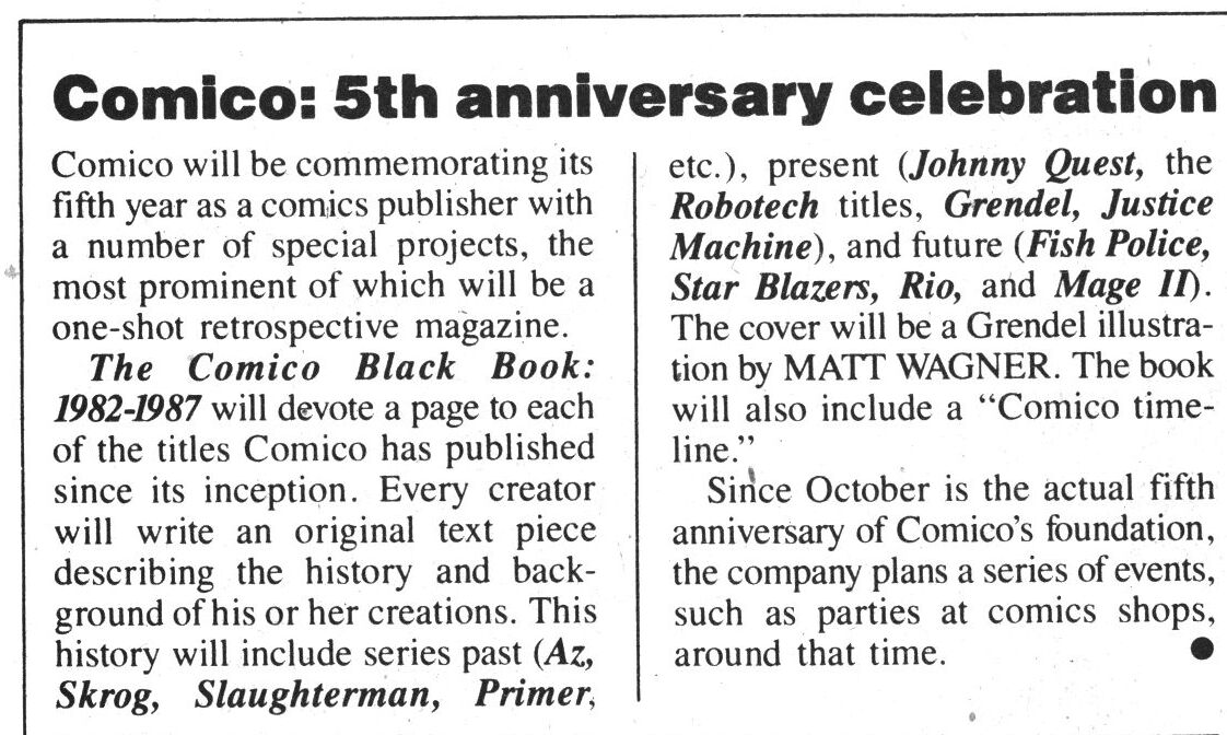Gerard Jones writes in Amazing Heroes #122, page #59: