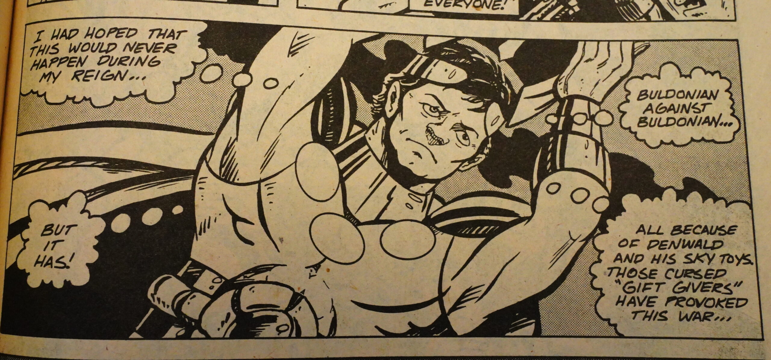 So you have a medieval setting, with sci fi weapons, and a mad evil villain, concealed identities, and possible humour from gender swapping, and… it’s not a bad setup, really? There’s certainly lots of possibilities for carrying on. Up the Khyber.