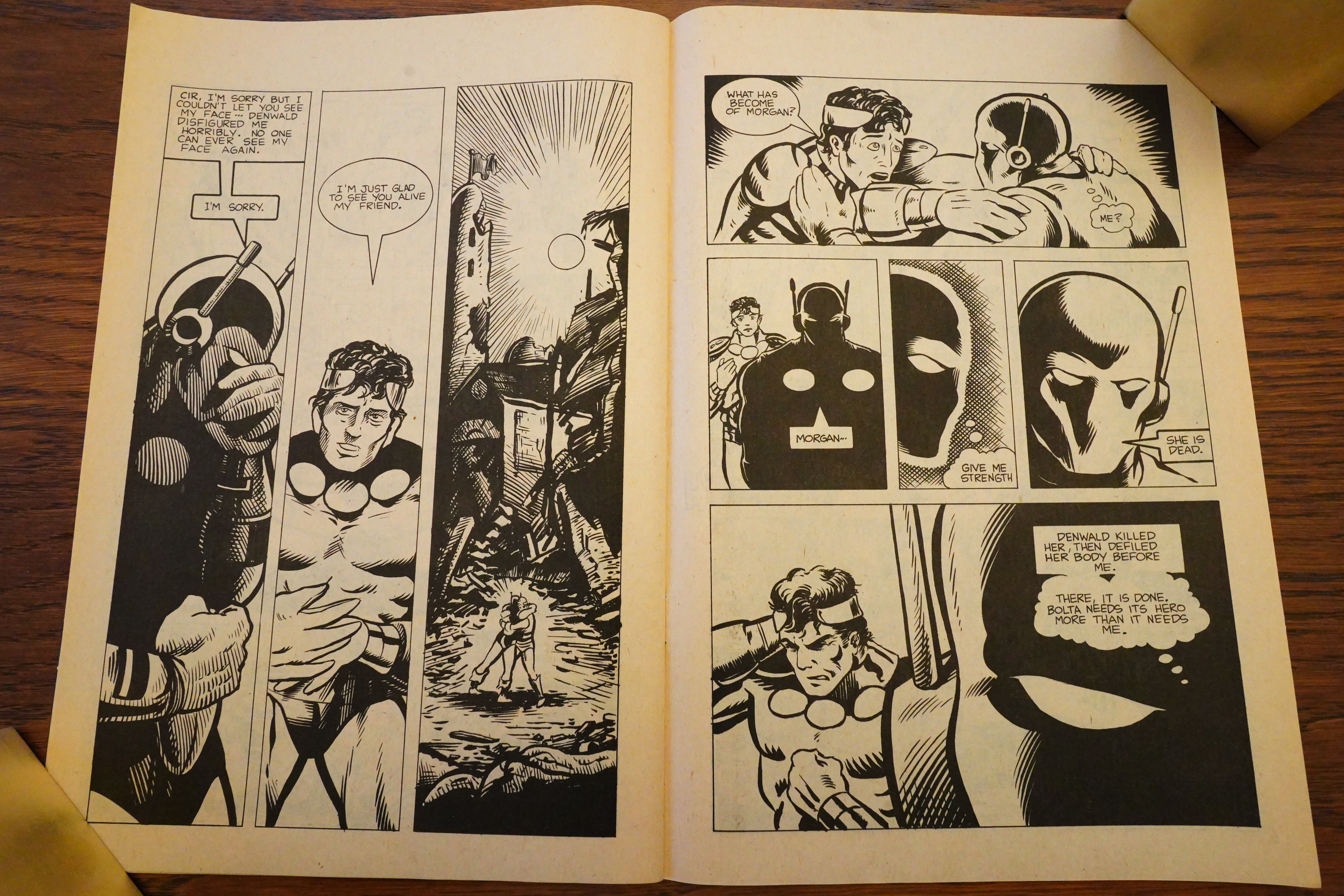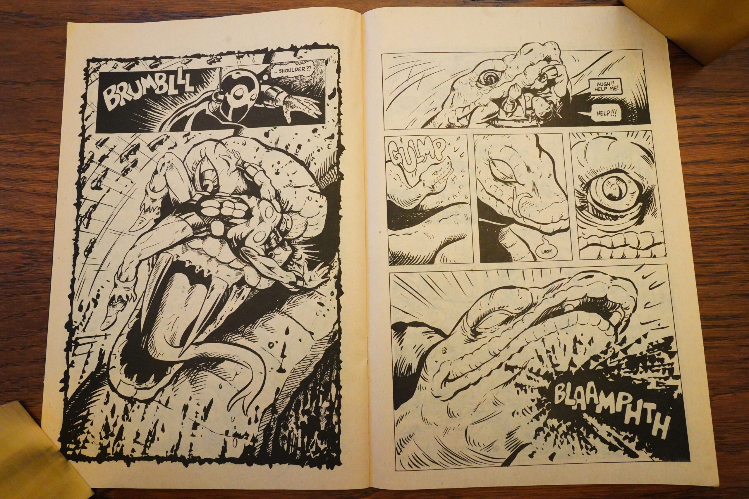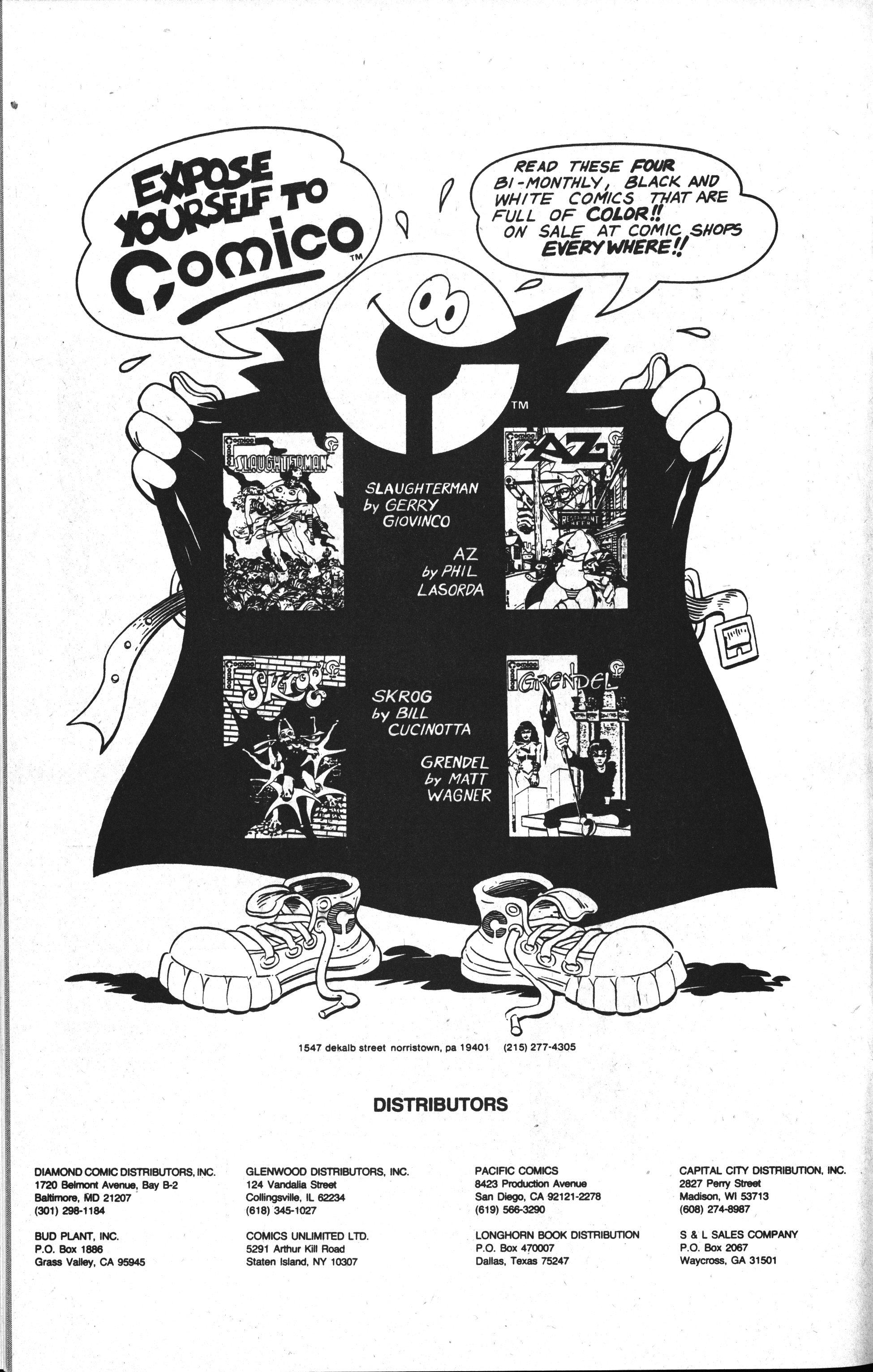 Amazing Heroes previews — this didn’t happen. When Comico switched to publishing colour comics, they planned on transitioning all their comics — Slaughterman, Az, Skrog — to colour. Instead they just cancelled them all.