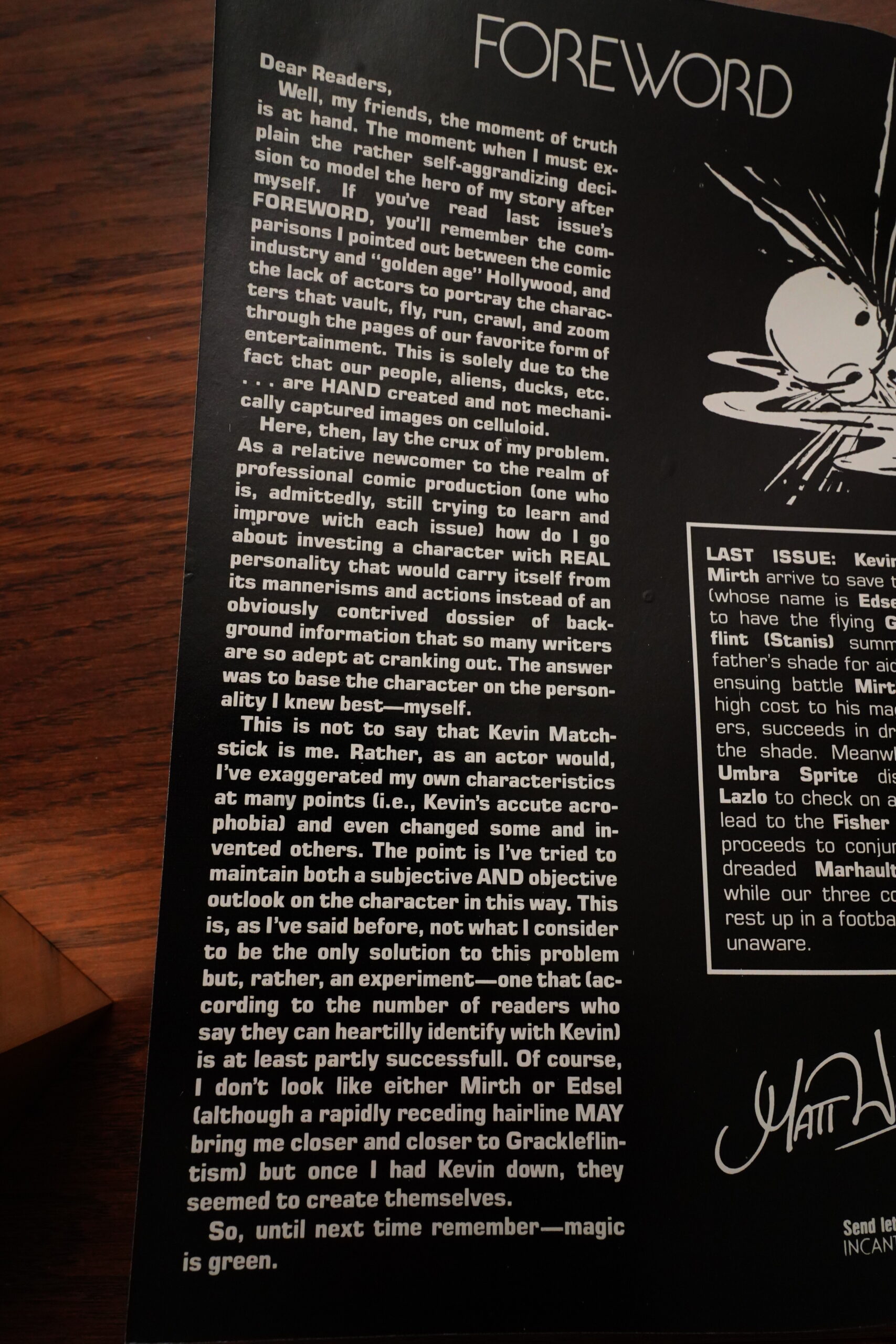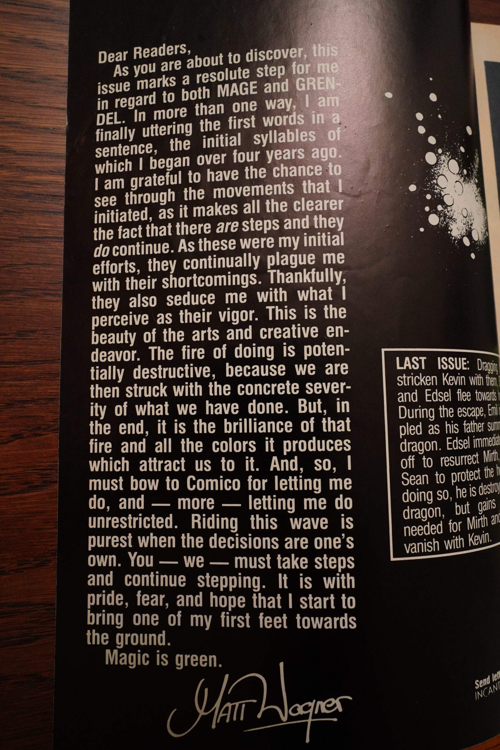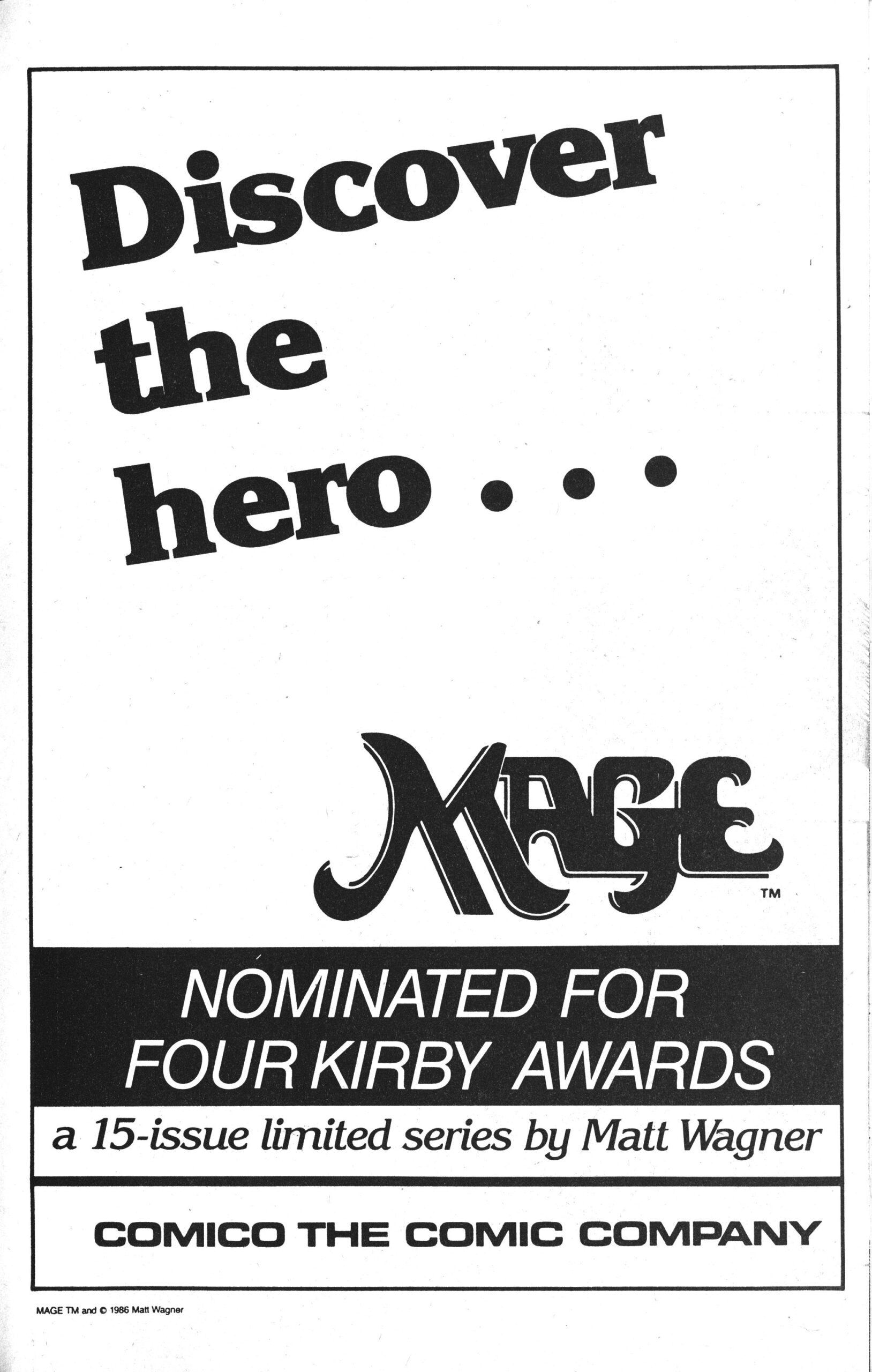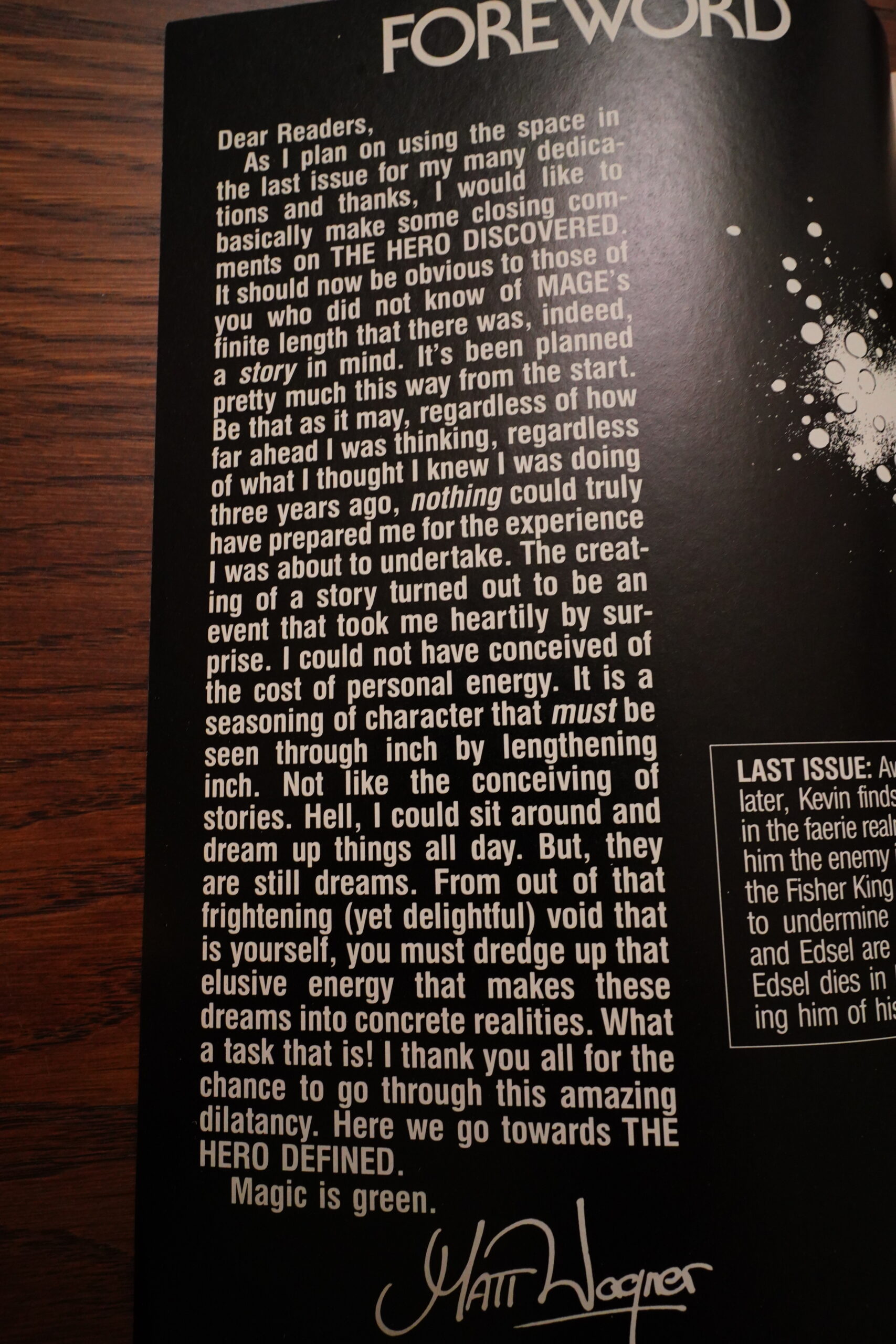So Mage spun out of Wagner being into Arthurian stuff, but then Camelot 3000 came out, so he had to drop his original project. And then the Comico guys needed, quickly, a new colour comic book to print to not lose money, and viola: Mage!