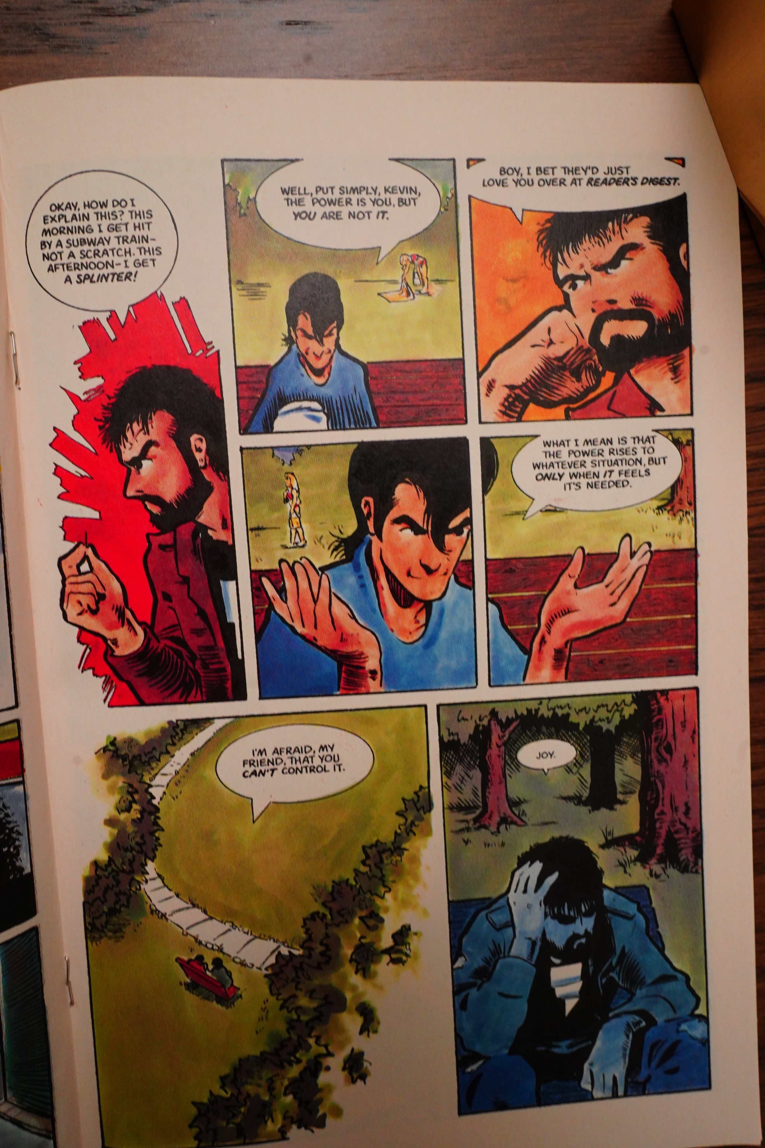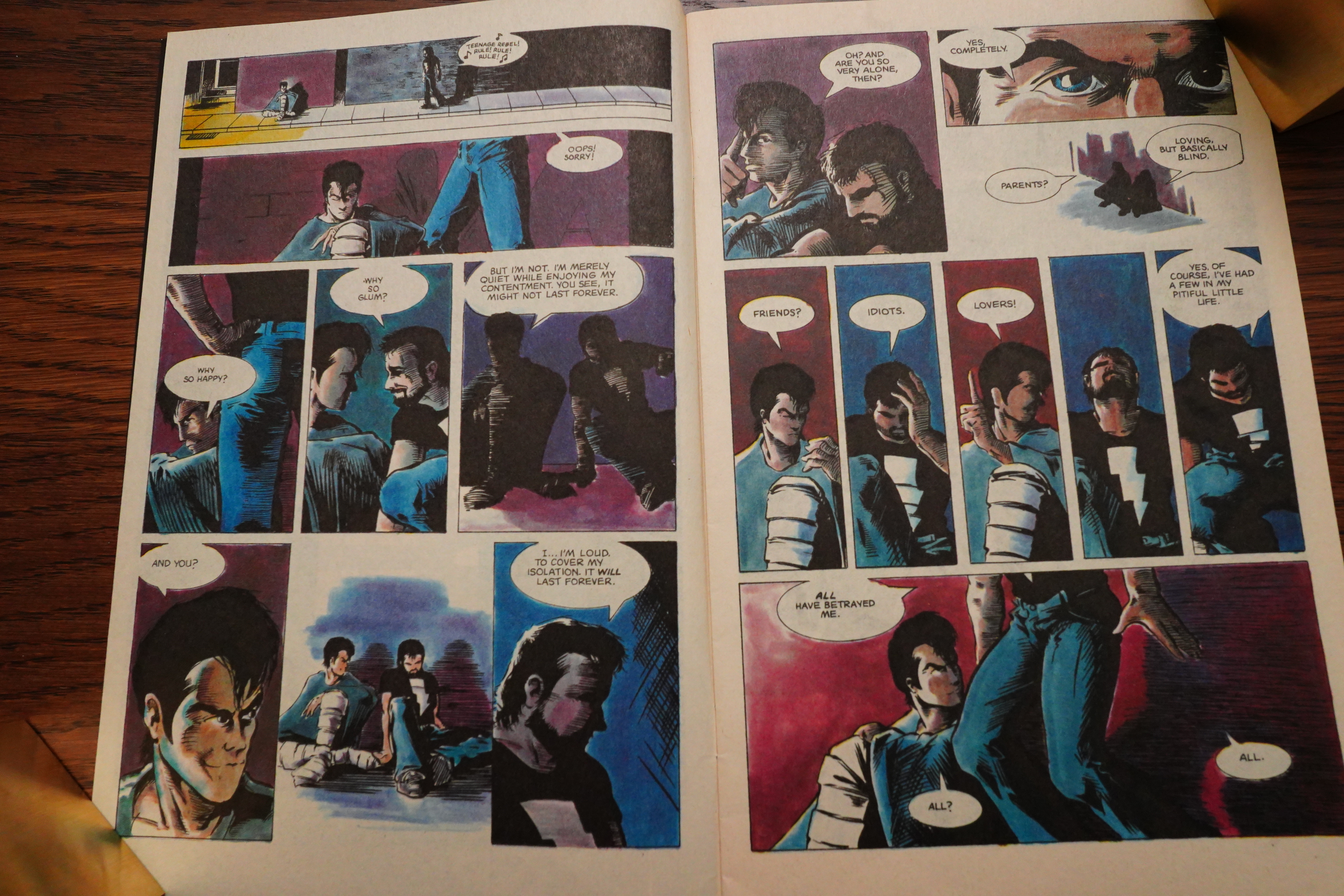 Another way he was ahead of his time (but seriously this time) is that there’s no recapping: This is a complete story that reads like a complete story. There’s a short recap of the previous issue on the inside front cover, but no in-story reminders, which was unusual at the time even for things that were meant to be limited series. Take, for instance, limited series published by Epic Comics at the time — recap-o-rama in every issue.