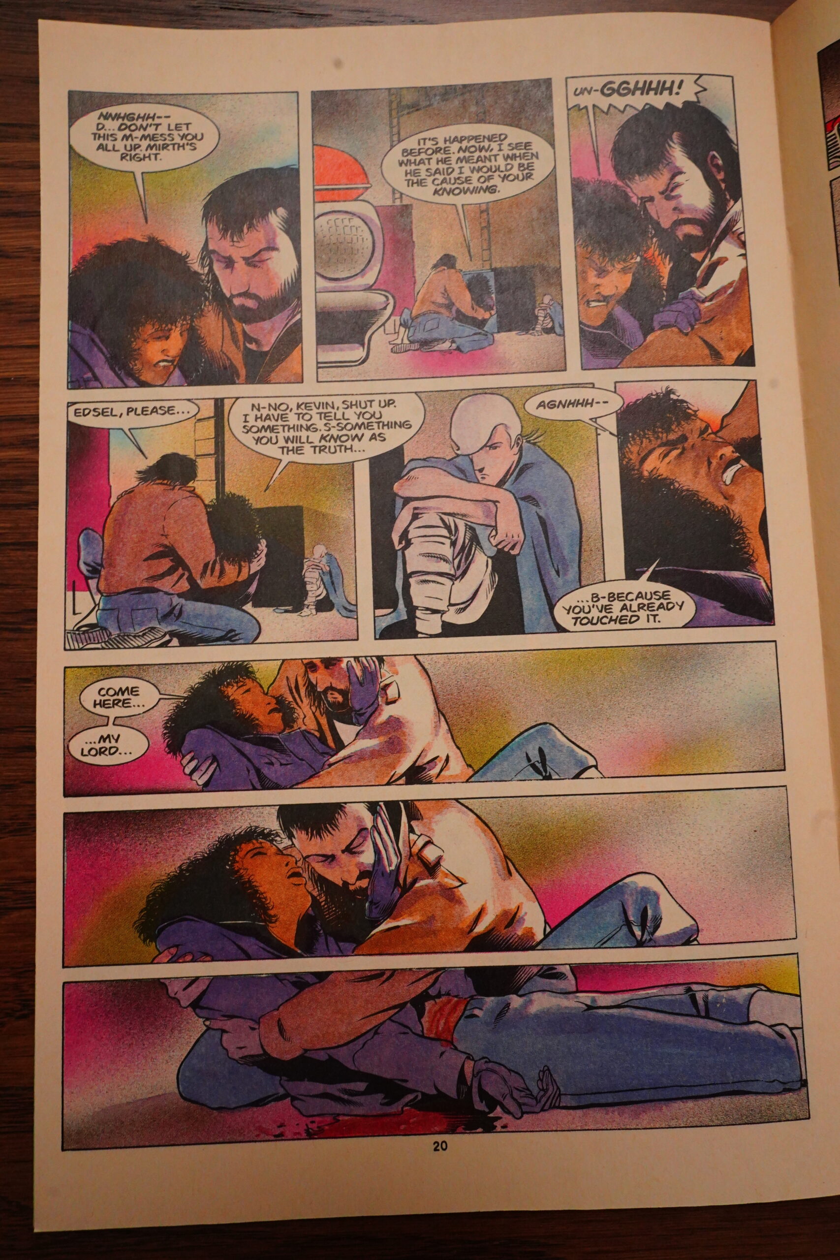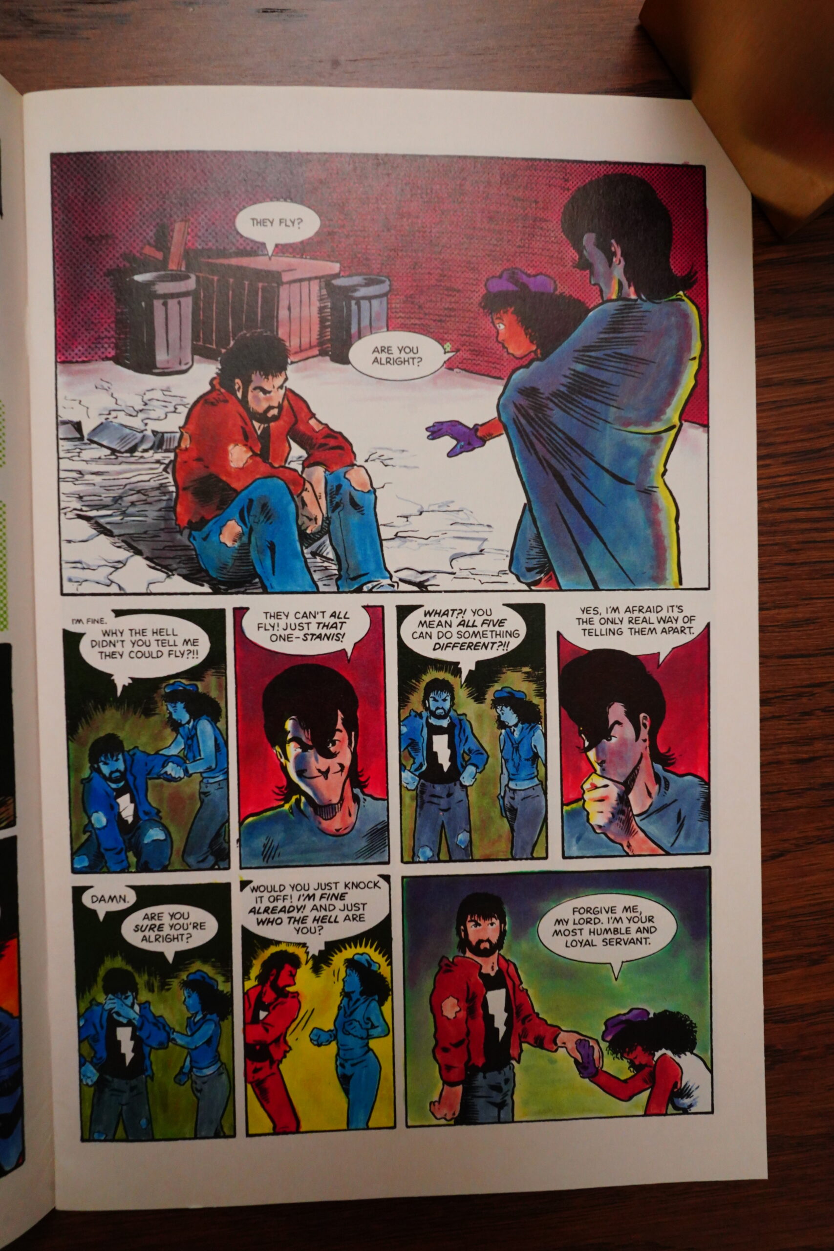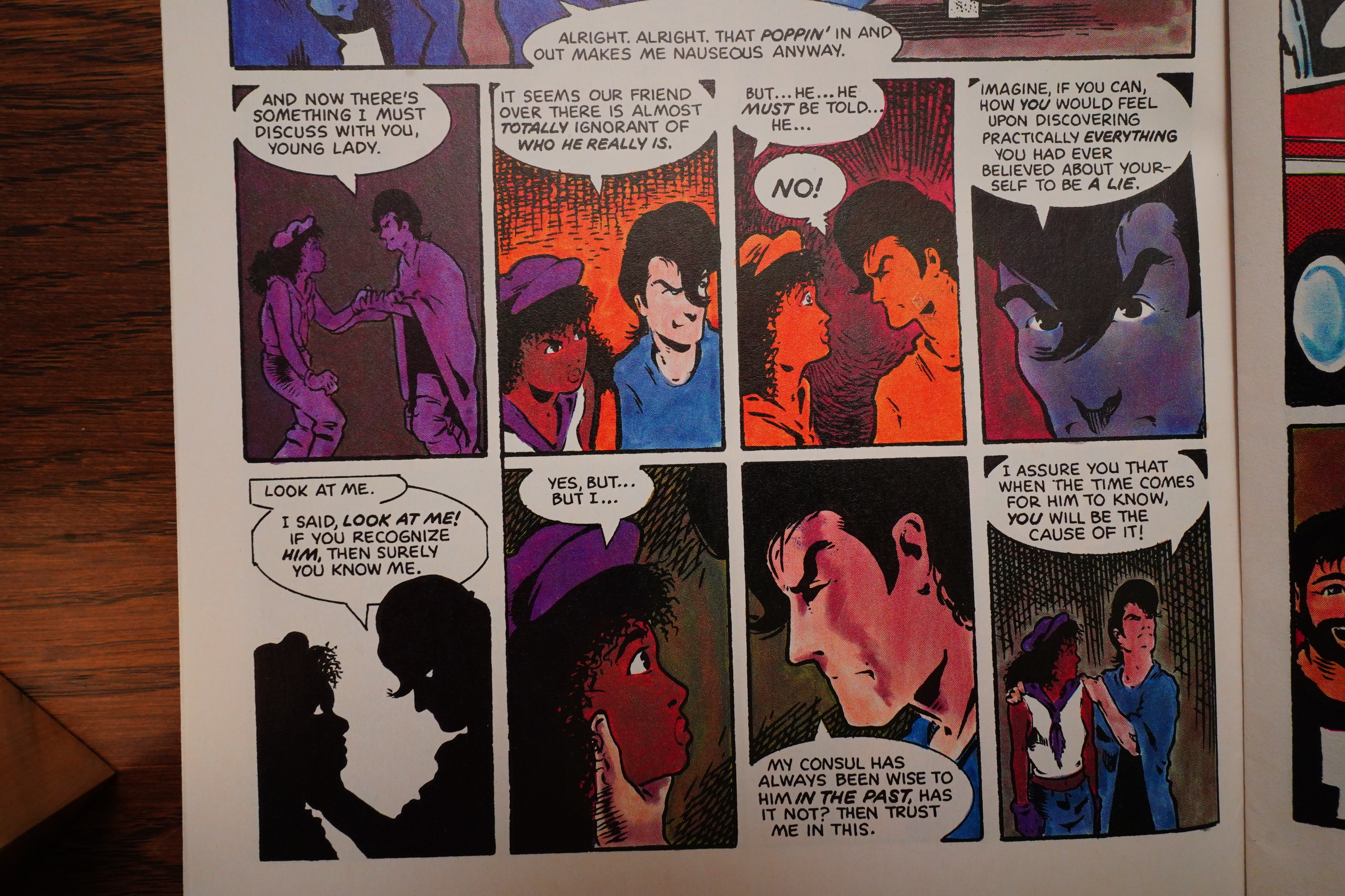 Unfortunately, Wagner starts infodumping a lot, which is something that continues until the next to last issue, really. One letter writer complains about not a lot happening in each issue, and how the lack of captions means that Wagner has to show everything instead of talking about it — but there sure is a lot of talking about things in dialogue form instead.