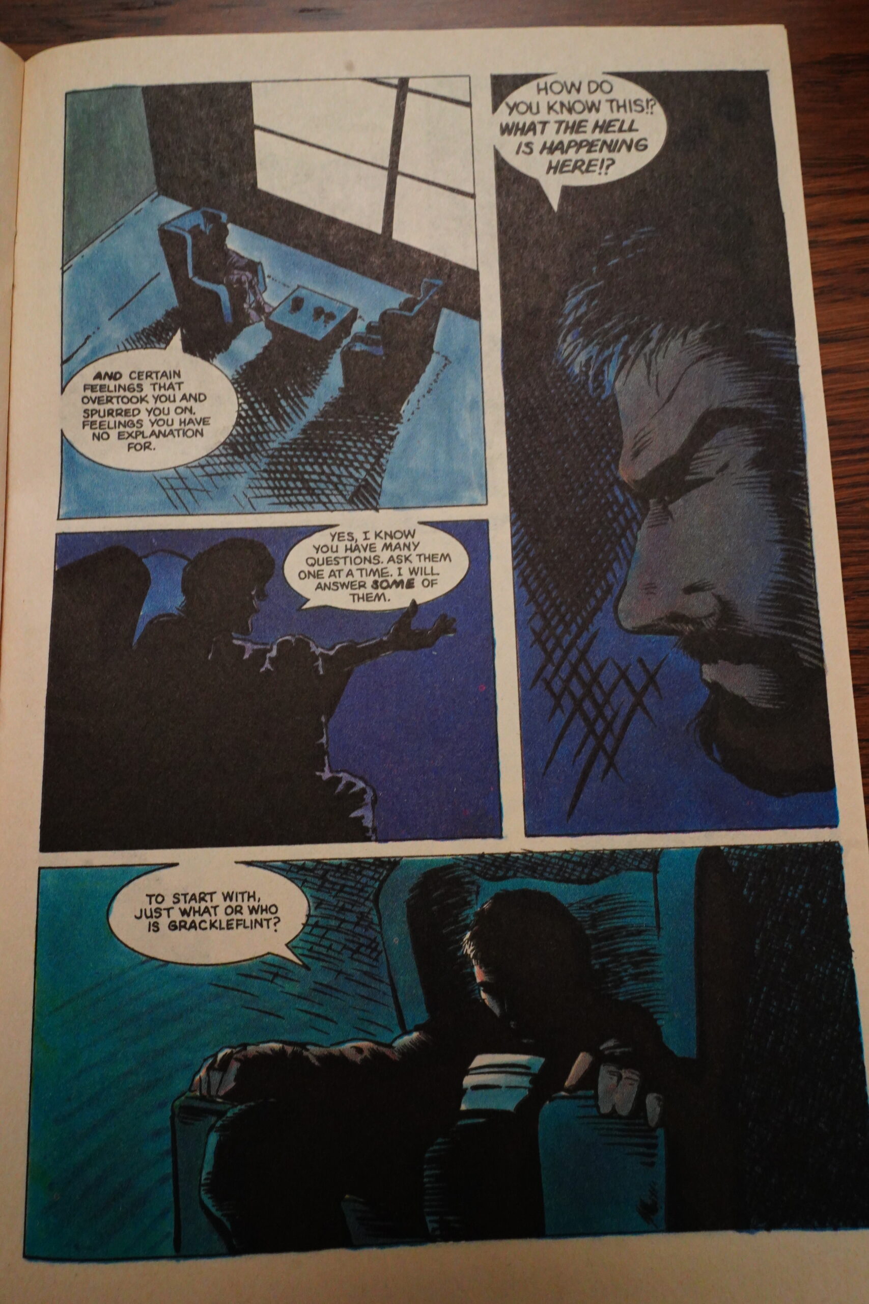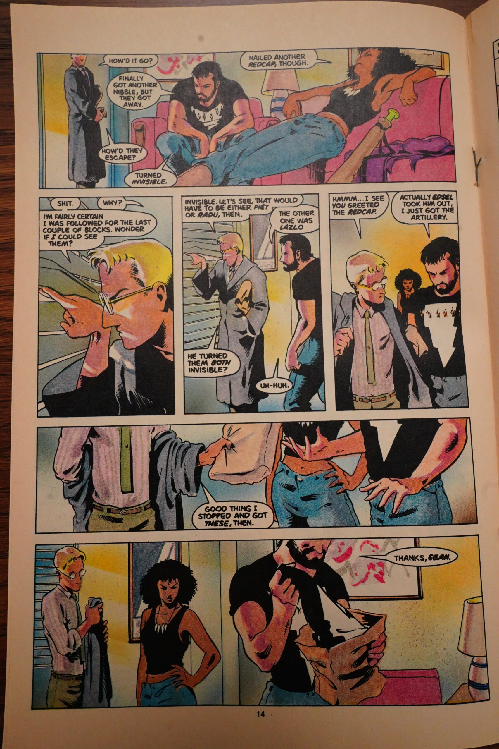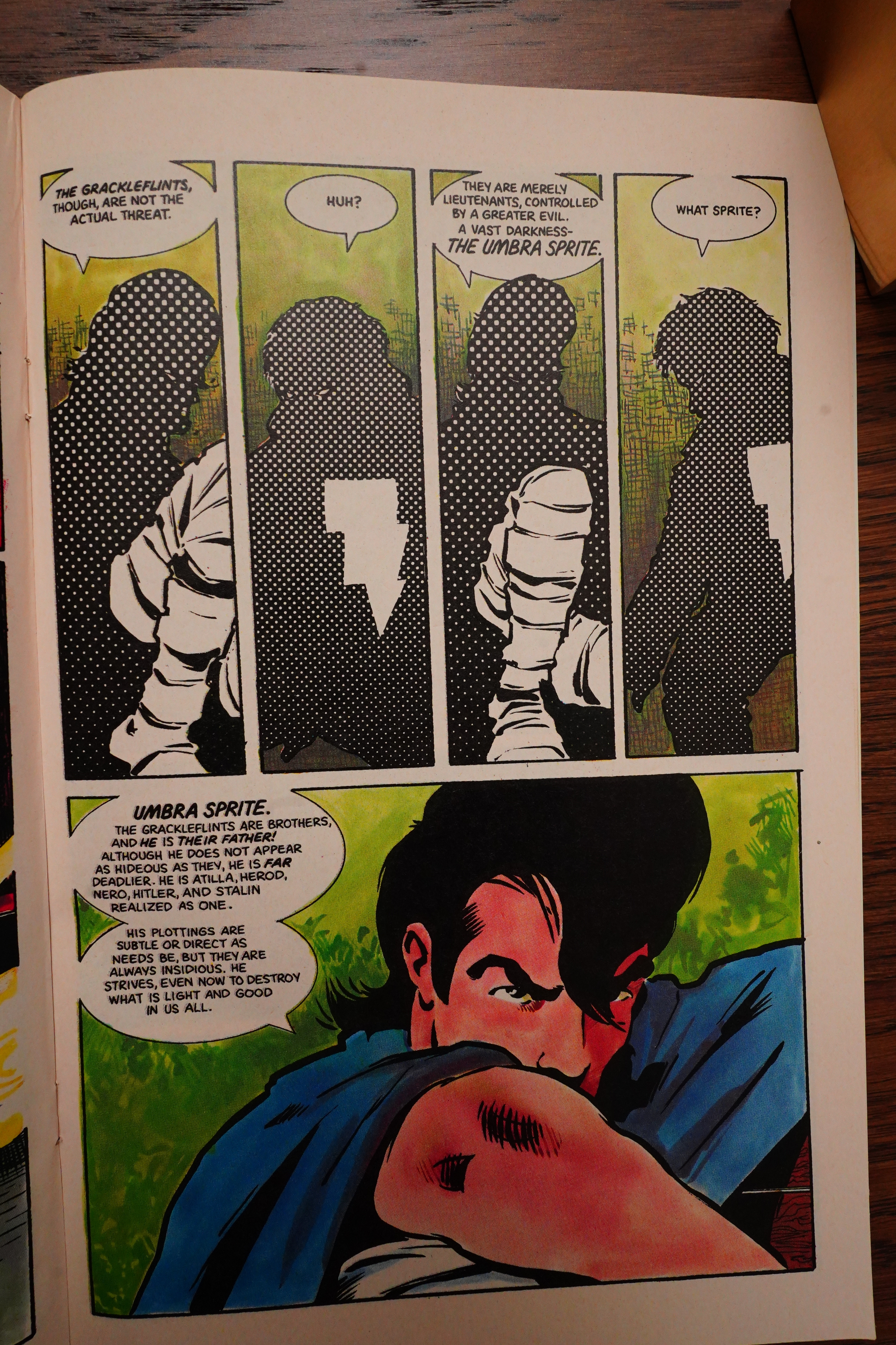 Unfortunately, Wagner starts infodumping a lot, which is something that continues until the next to last issue, really. One letter writer complains about not a lot happening in each issue, and how the lack of captions means that Wagner has to show everything instead of talking about it — but there sure is a lot of talking about things in dialogue form instead.