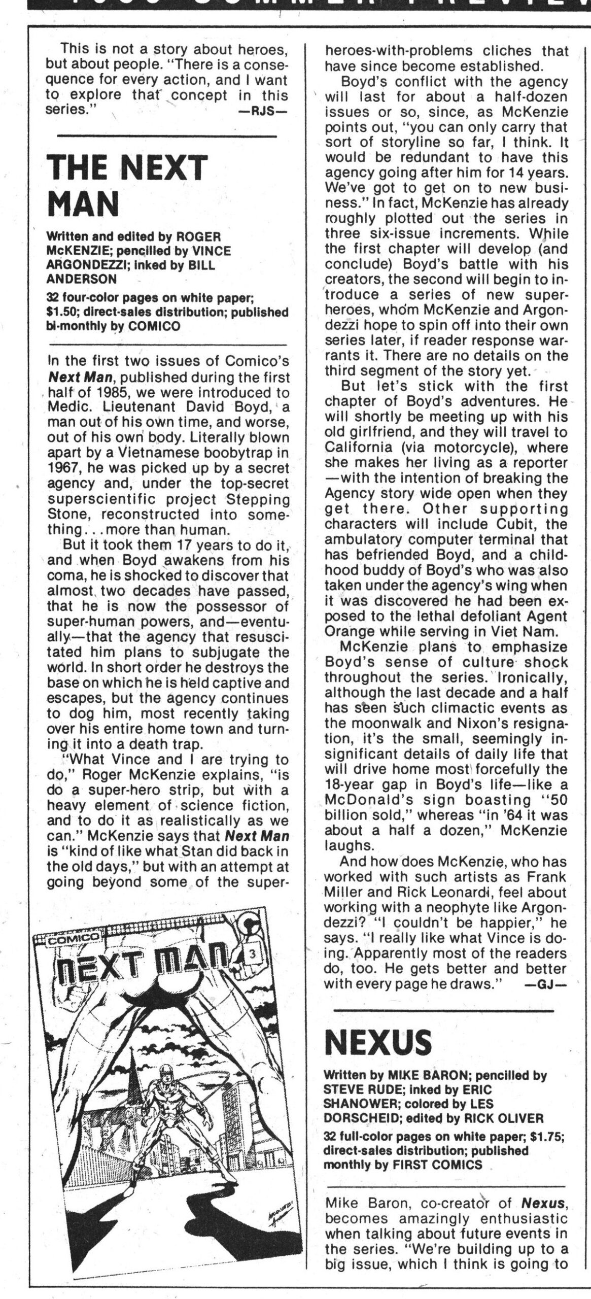 Next Man was not a “hit” for Comico but it was still a good book. Though the art was a bit raw it had a very Jack Kirby feel to it, which I would have liked to seen grow with the series.