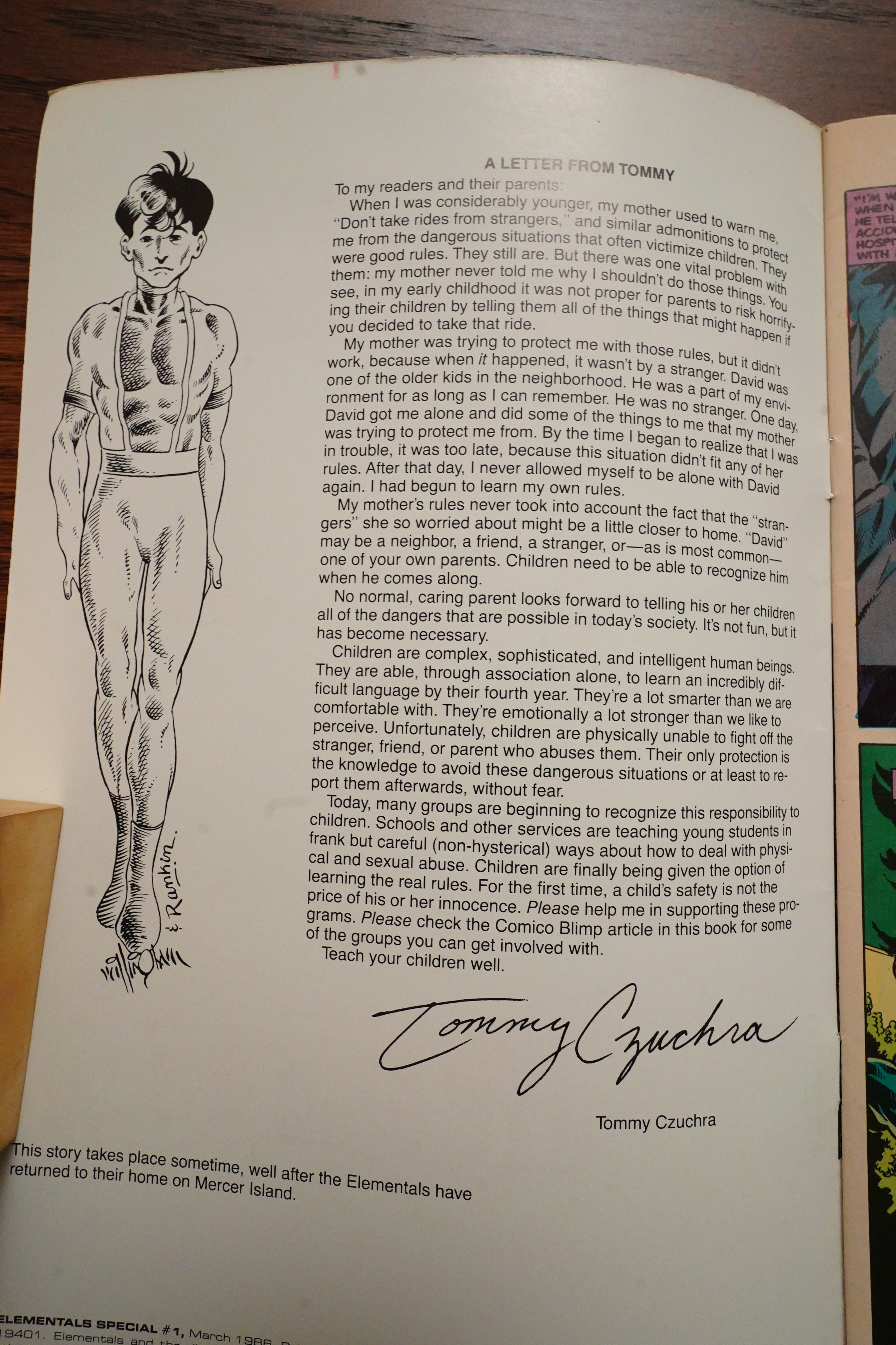 What a strange book! It’s basically just a vignette, and there’s no reason why it couldn’t have been a normal Elementals issue. But perhaps this really embarassing page they published explains what on Earth Comico were thinking: