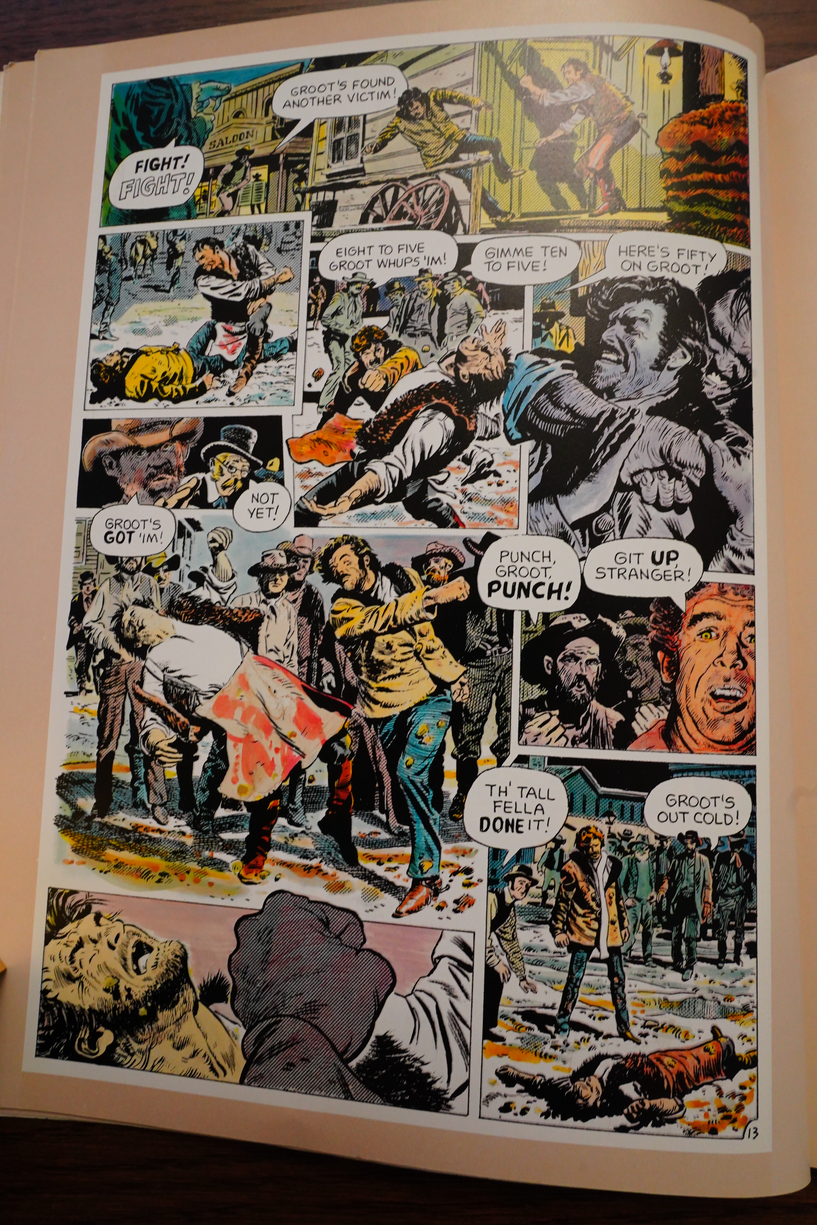This is a real labour of love for Wildey. There was no guarantee of any further Rio stories, so he threw everything into this three chapter gem, covering an inordinate amount of familiar Western scenes and characters. Gunfighters, cavalry, native Americans, a snowstorm, the railroad, buffalo, a bar brawl, a siege, a quest to clear Rio’s name and a trip to Mexico all feature. Many Westerns build to the inevitable town centre gunfight, but Wildey dispenses with that before ending his first chapter, knowing he has plenty of other scenes to draw. Not that Wildey is nothing more than the sum of his homages. There’s a viable plot with plenty of original twists. In among it all Rio is knowledgable and practical enough to know when standing on convention isn’t going to work.