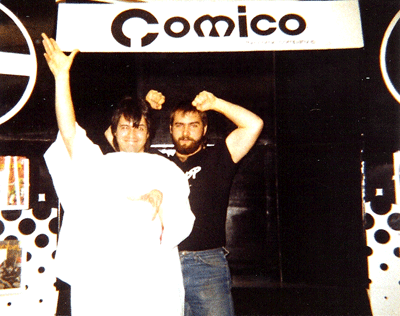 Rich Rankin and Matt Wagner at Comico Studios christening the newly constructed Comico Booth