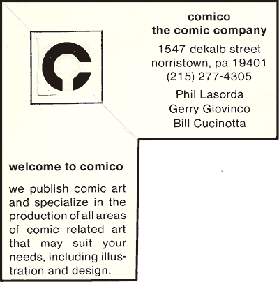 The original Comico logo was designed by Phil LaSorda and was as unique as it was cumbersome but it lent itself well to the unusual business card that I would design around it.