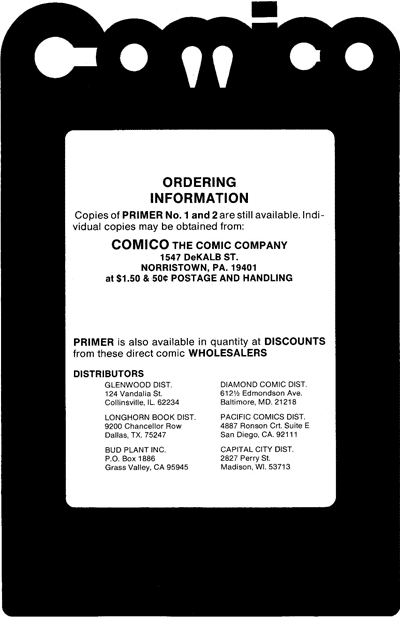 Back in 1982 we had to find someone to solicit Primer #1 before it was even complete. We had very little to show except photocopies of of pencils and a proposed cover.