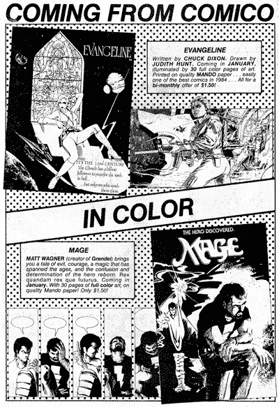 “Location, location, location!” This is the mantra of of real estate investors worldwide and was a dilemma we faced as we planned a promotion strategy for our first full-color comic book publications, Matt Wagner’s Mage and Judith Hunt and Charles Dixon’s Evangeline.