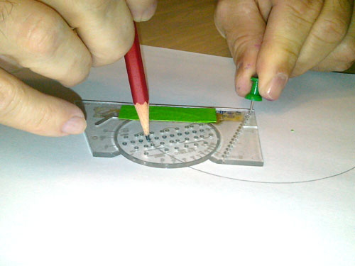 I have also found that the guide can be used to make circles by placing a push pin in one hole and a pencil in another. The pin anchors the center point of the circle and as you wind the pencil in the guide around the pin you will complete perfect circles every time. You can make concentric circles simply by moving the pencil to holes closer to the pin. This is a great option especially when a compass or a circle template is not readily available.