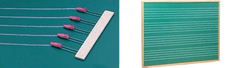 Remember learning penmanship in grade school? I used to get a kick out of the tool that the teachers used to draw lines on the chalkboard, it was a series of wire clamps mounted on a strip of wood. Each clamp held a piece of chalk and when the tool was drawn across the chalkboard several parallel lines were produced that then the teacher could demonstrate proper penmanship on. Music teachers also loved this chalk line tool for creating staff lines on the chalkboard.