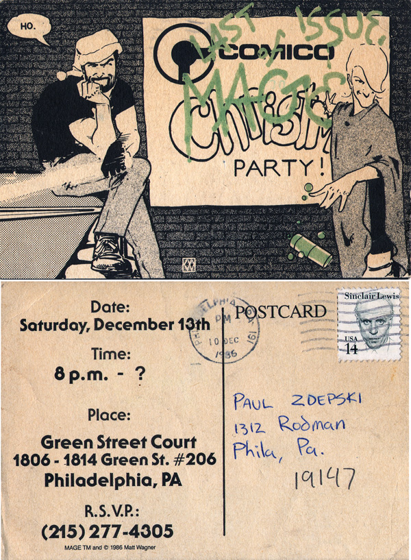 During the heyday of Comico one of the most vibrant studios that produced work for us was Philadelphia based Bain Sidhe Studios, the creative realm where Matt Wagner, Bill Willingham, Rich Rankin, Joe Matt and Bill Cucinotta along with others, generated works for Comico, DC and Marvel. Paul was a welcomed guest in that circle as evidenced by the Comico swag he posts on his own blog.