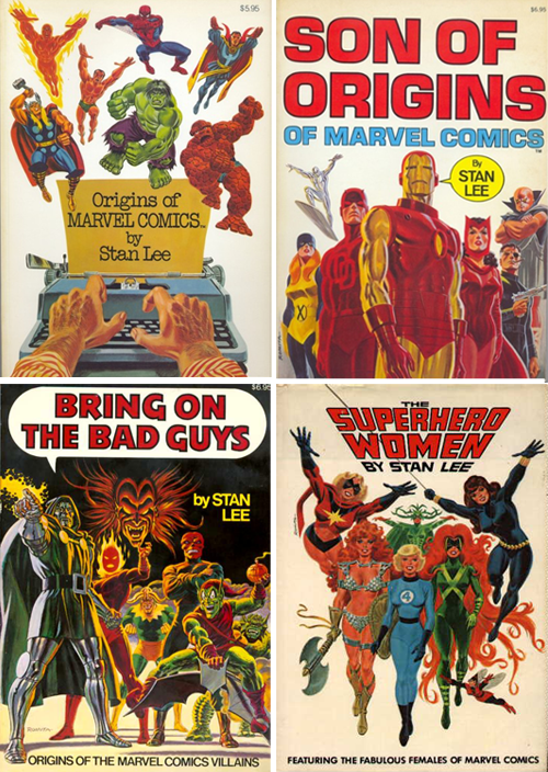 In 1974 Stan Lee authored Origins of Marvel Comics followed the next year by Son of Origins of Marvel Comics. The success of these two books led to The Superhero Women and Bring on the Bad Guys. These books all detailed his perspective of his creative relationships with the artists in the Bullpen especially his dependancy on his numero uno illustrator, “Jolly” Jack Kirby.