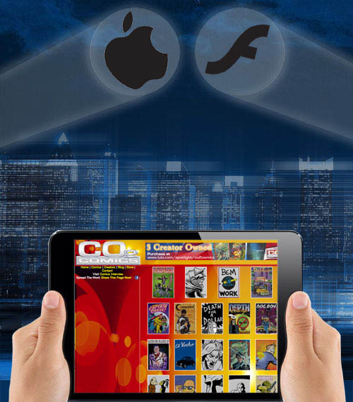 One of my biggest criticisms of Apple’s iPad (and the iPhone for that matter) was its inability to read Flash. This was particularly irksome to me since the CO2 Comics site depends on a Flash viewer to display all of the great comics that we have to offer. We use Flash primarily for its stability and it makes our viewer particularly compatible with motion comics like Bernie Mireault’s The Jam Urban Adventure.