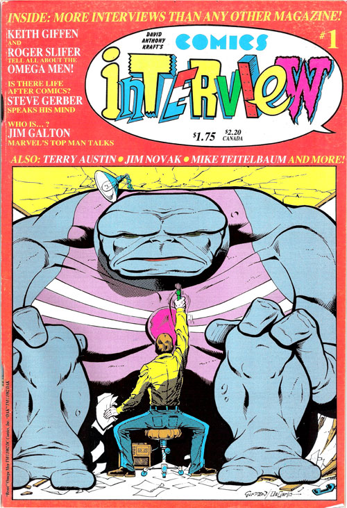 We had published our first black and white comic, Primer #1 in October of 1982 and a few months later, in February 1983, David Anthony Kraft’s COMICS INTERVIEW #1 hit the stands. We knew right away that this was a magazine that we wanted to be associated with and Bill, who was always focused on ways to promote our comics in the Direct Market, was quick to contact David Anthony Kraft to set up advertising arrangements.